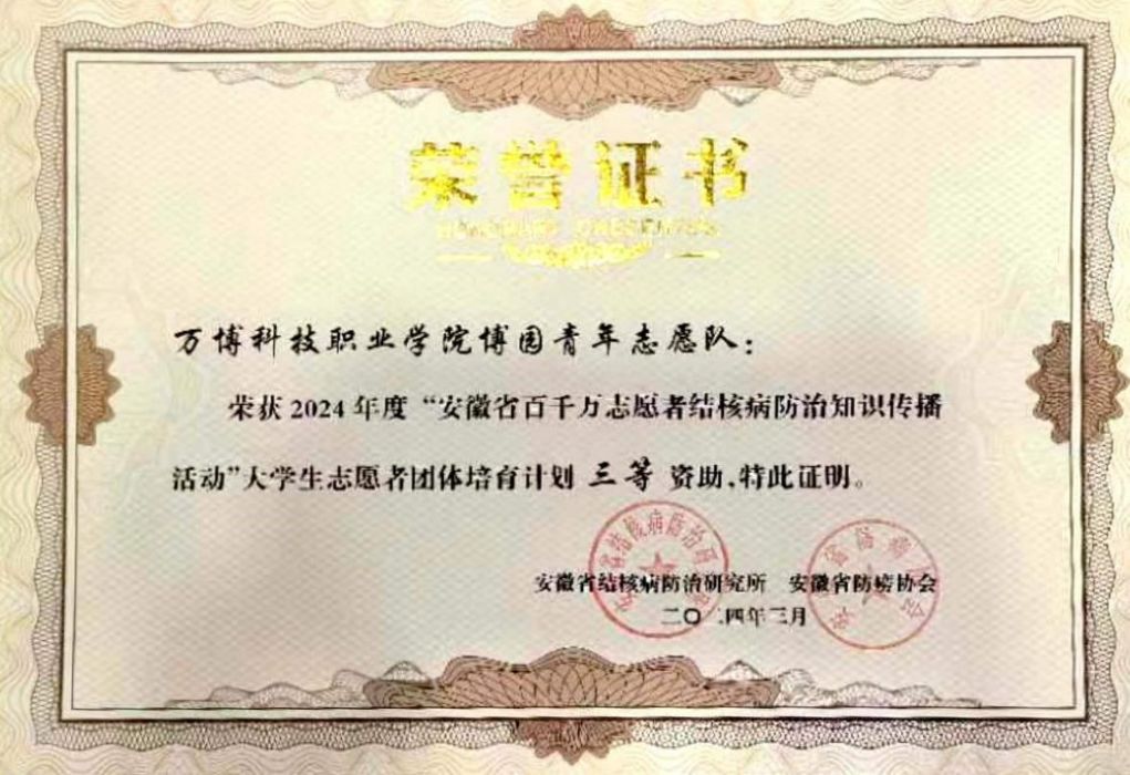 近日,由安徽省结核病防治研究所主办的“安徽省百千万志愿者结核病防治知识传播活动”评选圆满结束。彩神Vll博园青年志愿队荣获安徽省2024年度大学生志愿者团体培育计划资助。这是对彩神Vll在结核病防治知识传播方面充分肯定👨🏿🎤🍣,同时也为结核病防治知识在彩神Vll的深入宣传奠定了坚实的基础。