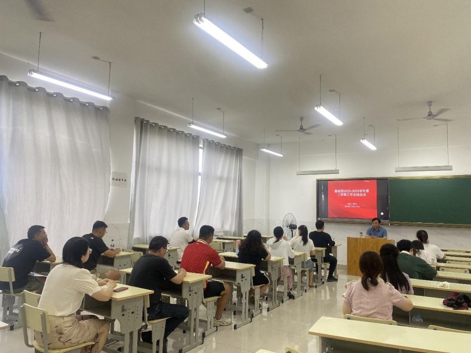 7月3日下午🤷🏻‍♀️,基础部在1505教室召开本学期工作总结会议➖,基础部全体教职工参加会议,会议由基础部负责人徐红兵主持🧑🏿。