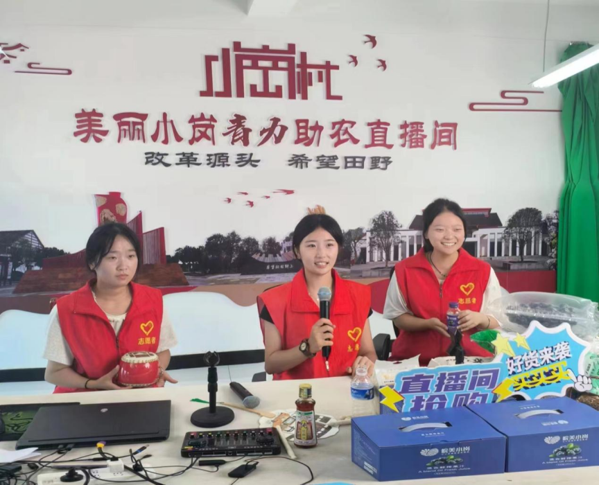 队员们走进小岗村官方抖音号“美丽小岗”直播间❓,开展乡村振兴助农直播👂🏻。在直播中,团队成员通过现场展示商品、详细介绍🥷🏽、才艺表演、实时互动等方式,向社会大众介绍小岗村的特色产品,如农产品、手工艺品等,帮助拓宽销售渠道🚶♂️➡️,提升当地产品的知名度和影响力,从而促进农民增收🏋🏿♀️,助力乡村振兴👨🏽🍼。