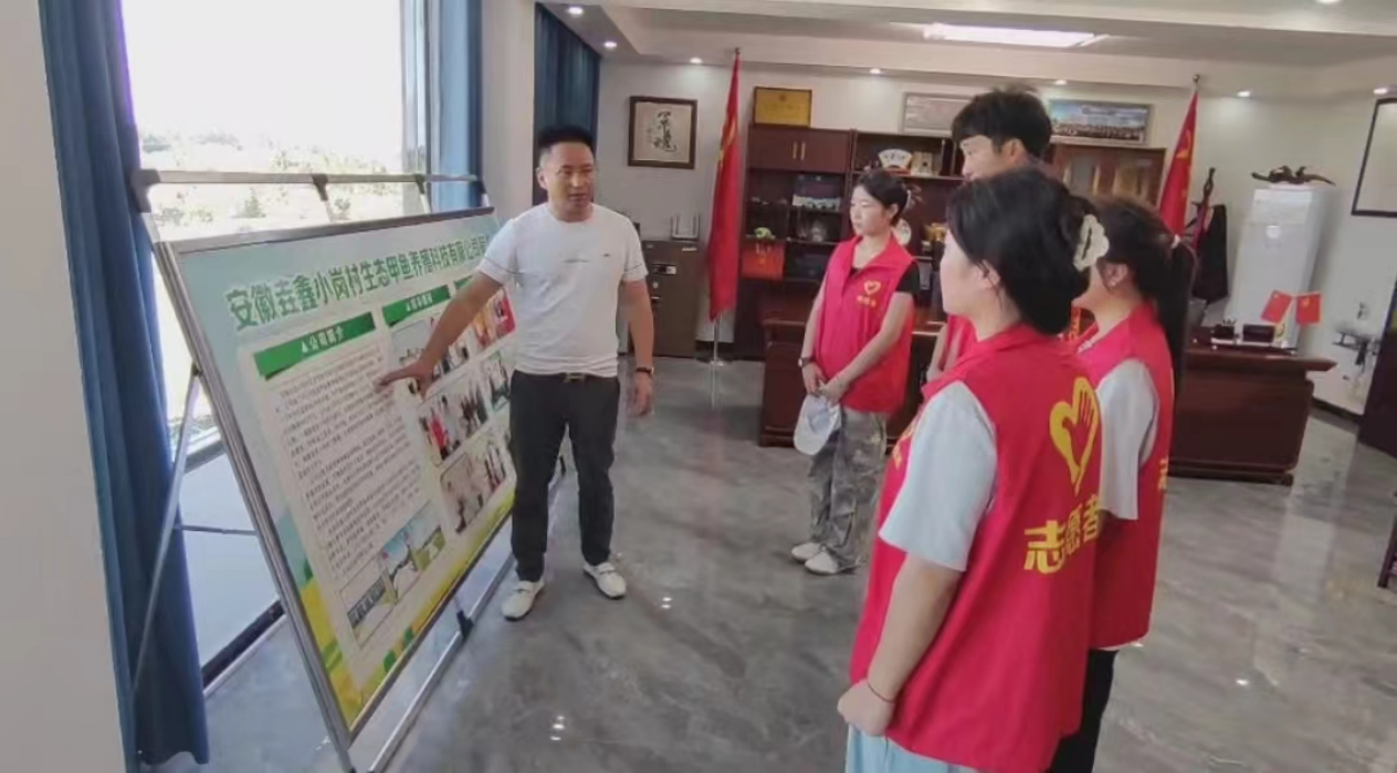 实践队走进安徽垚鑫小岗村生态甲鱼养殖合作社调研👸。工作人员带实践队员参观合作社展厅,讲述合作社发展模式、产业规模、产业效益等内容。合作社注重甲鱼的深加工👩🏿💼,如甲鱼半成品、甲鱼胆酒、甲鱼血酒等产品,大大增加产业值👼🏼💁🏿♂️,带动农民致富🧑🏽🎓,助力乡村产业发展。