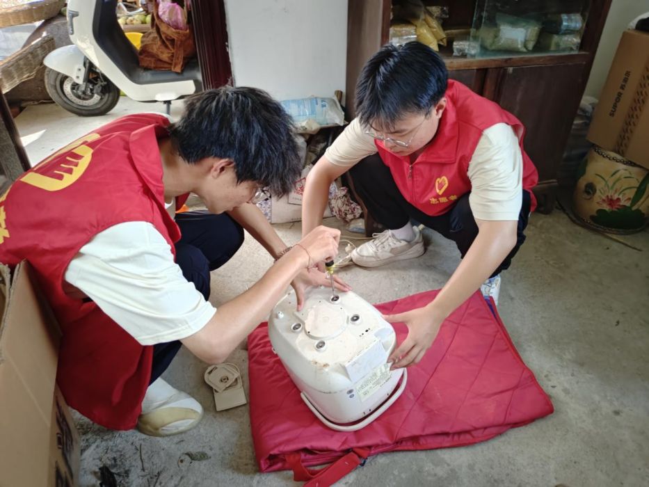 在村委会工作人员的带领下,队员们走家串户,充分发挥自身专业知识向老人们讲解家电使用注意事项,义务维修小家电。一位老人家拿出故障已久的电饭煲🐓,两位队员熟练地拆开外壳,仔细检查线路和零件,找到故障所在并完成维修。队员们帮助行动不便老人家的院子里除草、打扫卫生、晾晒被子。