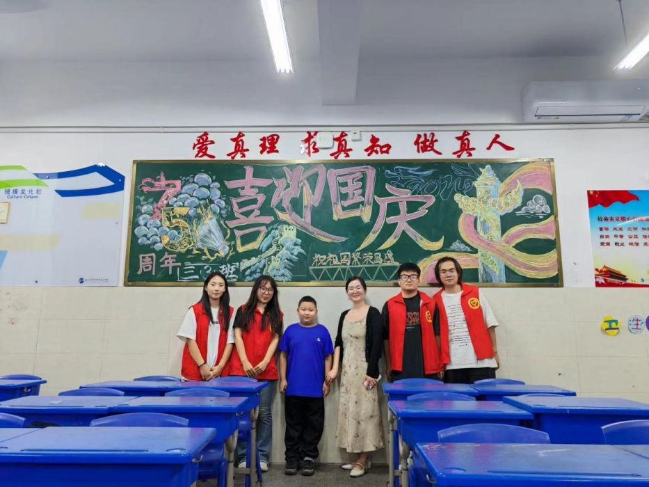 9月29日🦏🙎🏼,国庆佳节来临之际,音乐教育学院师生积极行动,前往合肥市五十中学校寿县分校,开展绘制《喜迎国庆👨🏼🎤,爱我中华》主题黑板报活动✹。本次活动由学院辅导员蔡娜娜老师带队,参与人员为音乐教育学院部分学生及五十中学校寿县分校的师生💁🏽♀️。