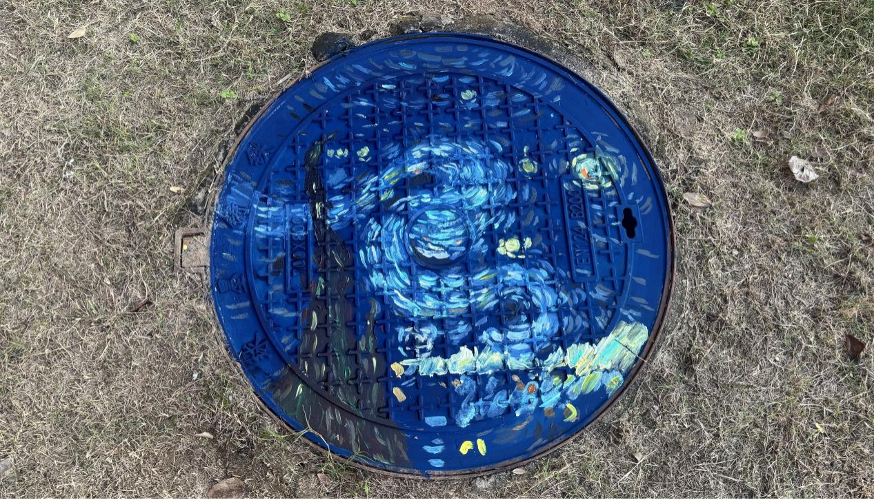 在活动中,学生们自由组成小组,每个小组确定涂鸦主题,围绕一个个窨井盖展开创作。同学们充分发挥创造力和想象力,用画笔和颜料为校园里的窨井盖披上了五彩斑斓的“外衣”。经过同学们的精心创作🕉,校园内的窨井盖仿佛变成了一件件艺术品👩🏻🔧,吸引了众多师生驻足观看🩸。