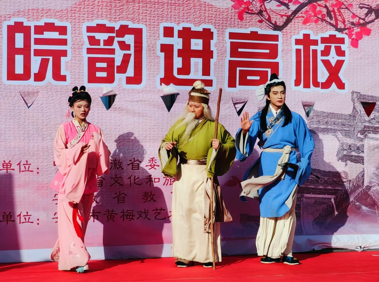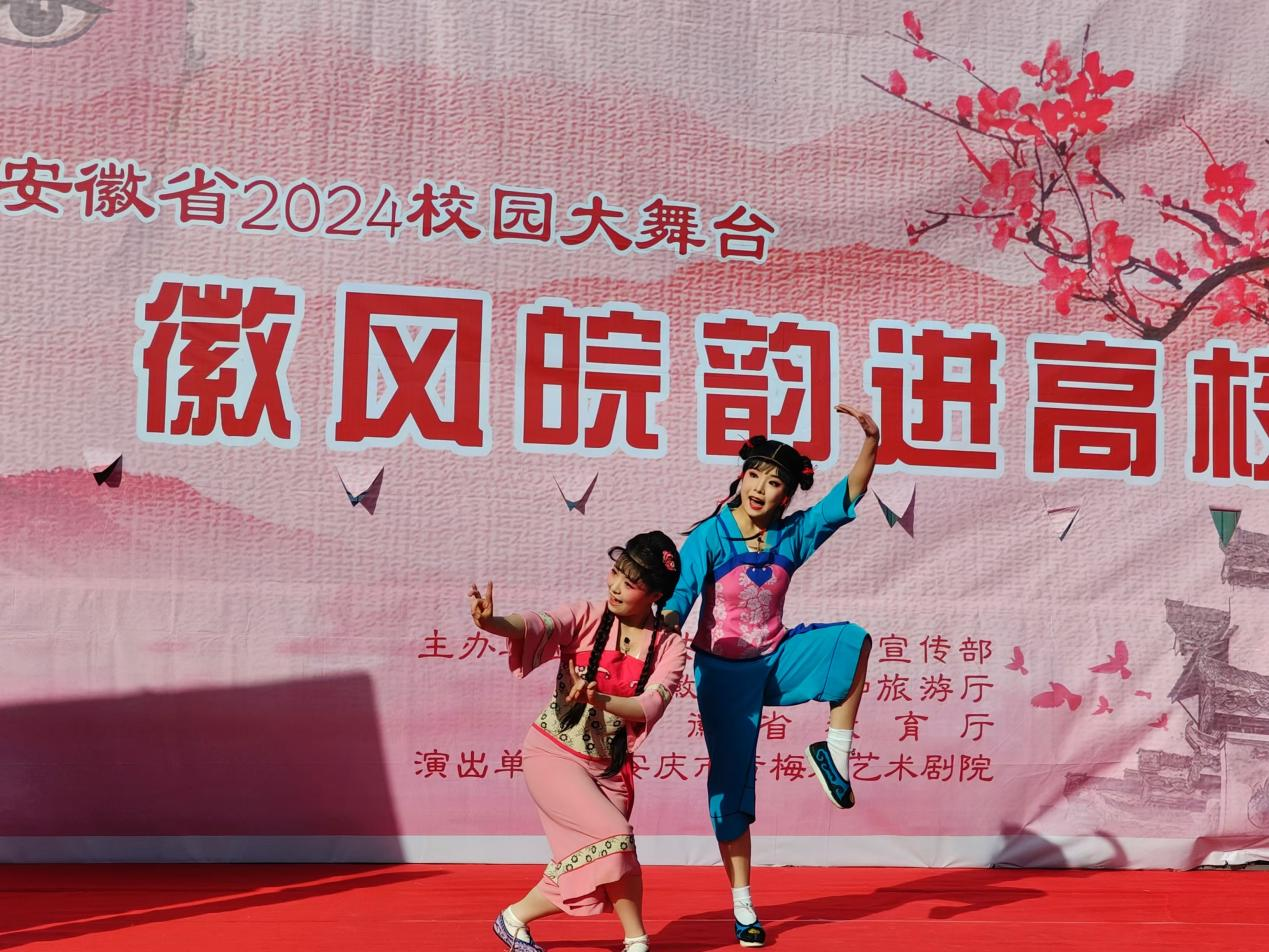 为宣扬中华优秀传统戏曲文化,提升彩神Vll大学生的艺术修养和文化自信🐺,11月27日⛈,由省委宣传部、省教育厅、省文化和旅游厅联合主办,彩神Vll学院、安庆市黄梅戏艺术剧院承办的“徽风皖韵进校园”活动在彩神Vll隆重举行。校党委书记鲍习生、有关职能部门负责人及师生共200余人一同观看演出,感受黄梅戏曲的经典魅力。