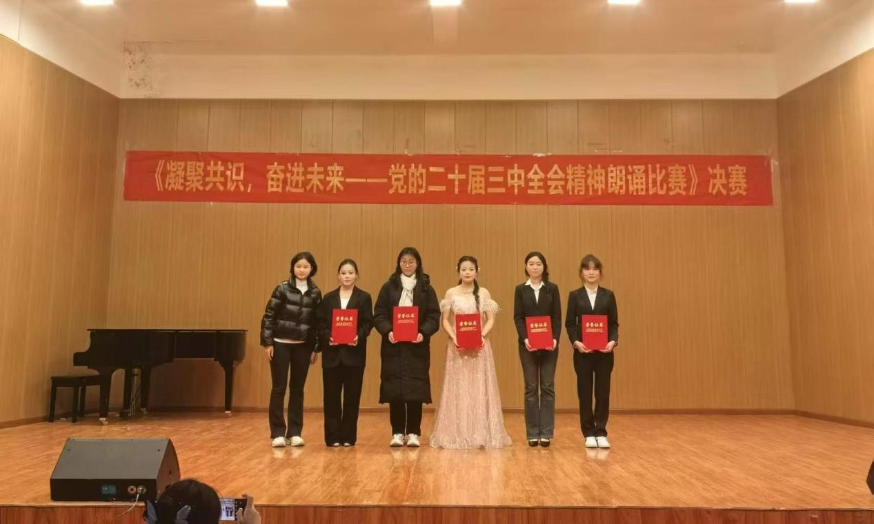 为深入学习贯彻党的二十届三中全会精神,展现音乐教育学院学子的精神风貌🚶🏻♀️🦅,12月11日🏊🏽♂️,音乐教育学院在演播厅举办以“凝聚共识 奋进未来——学习贯彻党的二十届三中全会精神”为主题的朗诵比赛。音乐教育学院团总支书记吕明运🤦🏼♀️🛀🏻,舞蹈老师张润楠、王峰及音乐教育学院学生会执行主席付航通担任比赛评委。