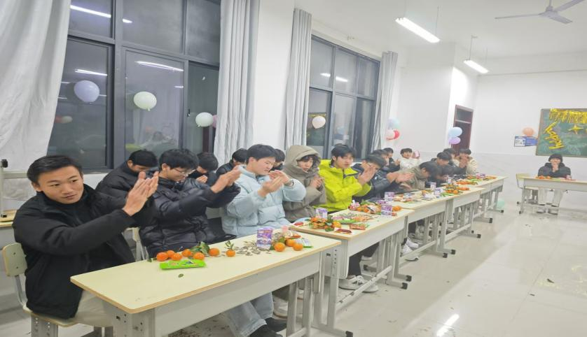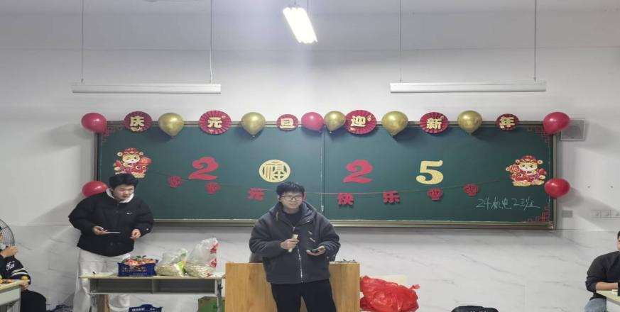一元复始,万象更新。在元旦佳节来临之际,交通工程学院24级新能源1班、新能源2班、室内设计班、风景园林班🧑🔧、机电1班、机电2班以及无人机班于12月23日晚在教室举办了一场场别开生面的元旦晚会,共庆新年的到来。