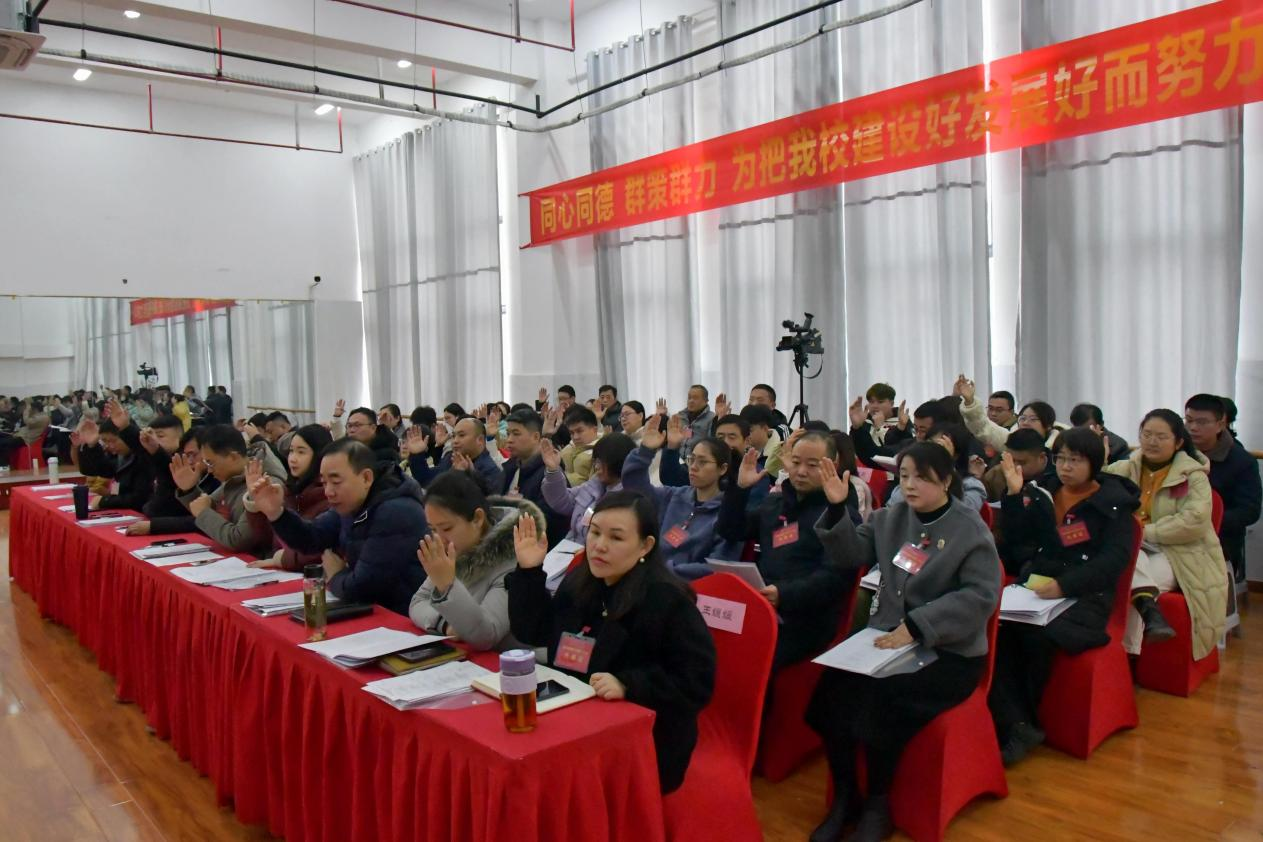 预备会议结束后🎊,大会在雄壮的国歌声中开幕🧶。与会代表首先听取审议了张进所作的《学校工作报告》。报告全面回顾了学校在党的建设、招生工作🧑🏻🦯、教学改革、人才建设、校园文化、学生就业帮扶等领域的工作成效🤳,总结了学校“十四五”规划期间改革发展取得的经验,分析了当前制约学校发展存在的困难和问题。报告对2025年学校重点工作进行了部署🤹♀️🧛🏻♂️:一是统筹部署,创新思维↔️,发挥党建引领作用;二是打造团队👩🏻🦽♟,加强交流,推动竞赛成果转化🧎;三是发挥优势,准确定位,打造特色教育模式;四是获取资源,加强建设,实现发展瓶颈突破;五是加强指导,拓展岗位,做好学生就业保障🤛🏿。