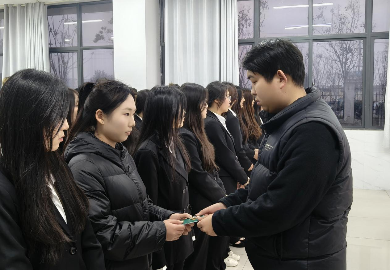 校团委许鑫宇老师为新团员们颁发团员证与团徽。当闪耀的团徽佩戴在新团员胸前,他们正式成为共青团的一员,肩负起为共产主义事业奋斗终身的神圣使命。