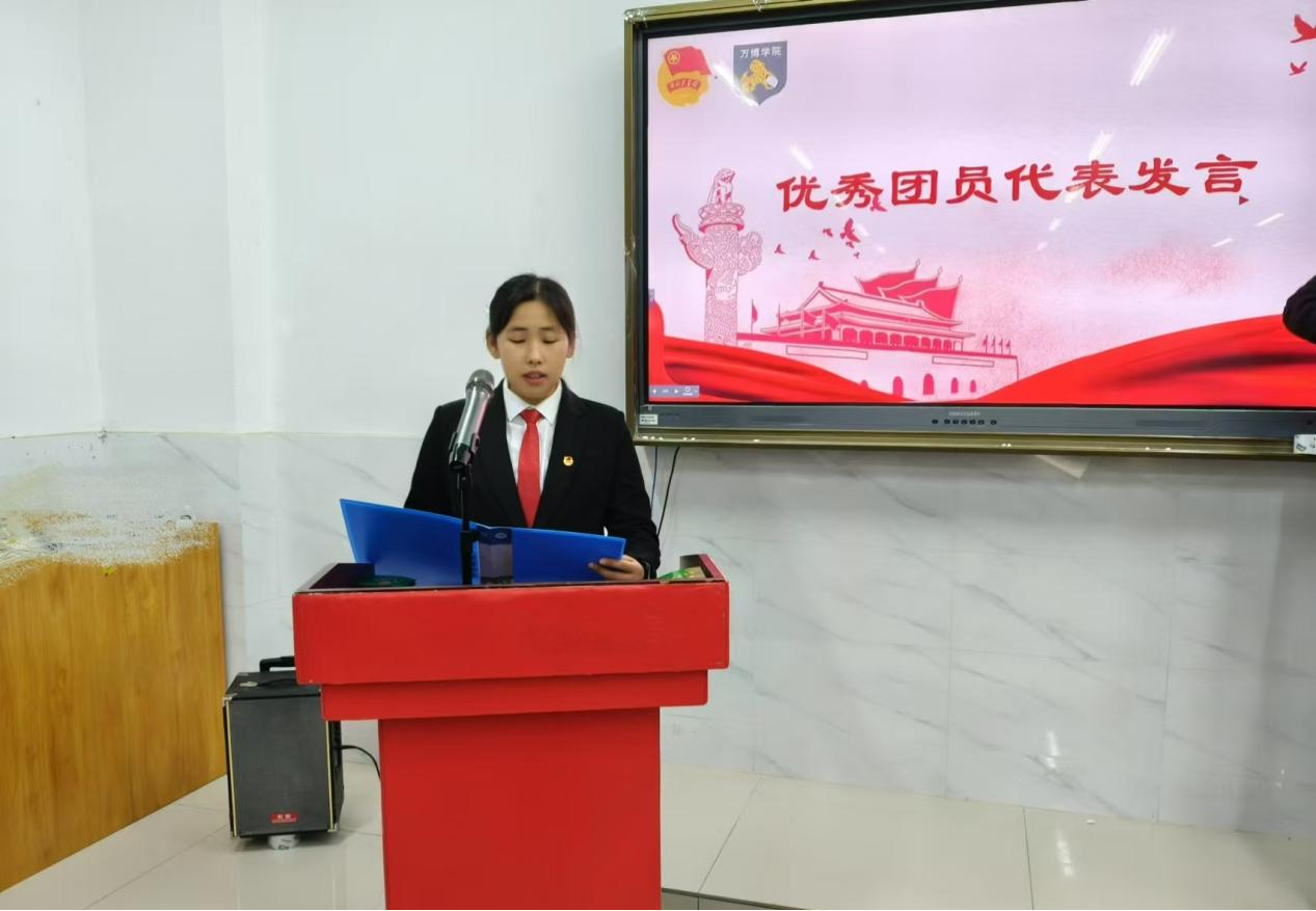 优秀团员代表孟祥达同学分享了在共青团组织中的成长经历🦔,鼓励新团员在学习中提升自我🦹🏿🦵🏿,在社会实践中积极锻炼综合能力在团组织中磨砺意志,努力成为社会主义建设者和接班人🎾。