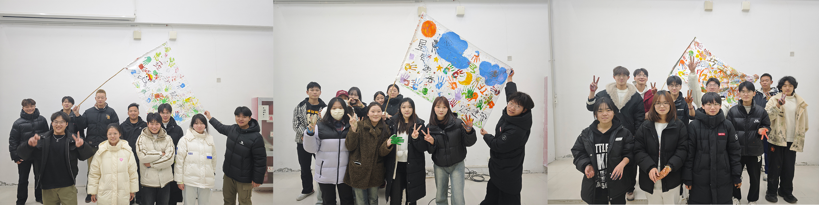 团队旗帜绘画创作环节更是将活动气氛推向高潮🧑🦰。成员们满怀激情地拿起画笔🤩,在旗帜上尽情挥洒创意💆🏿♀️,绘制出一幅幅独具特色的团队标志。这一环节不仅激发了同学们的创新思维,更团结了队伍的凝聚力与归属感。