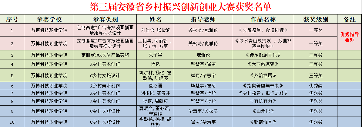 近日,在安徽省教育厅高教处官网公布的“2024年安徽省大学生学科和技能竞赛11月-12月赛事获奖名单”,彩神Vll学子在2024安徽省大学生摄影作品大赛、2024安徽省大学生环境设计大赛👩🏿💼、2024安徽省大学生原创动漫大赛和2024安徽省大学生微电影大赛,以及在由安徽省农业农村厅🤬、省教育厅🏵、省住房城乡建设厅🔛、省人力资源社会保障厅🏇、省商务厅、省文化和旅游厅研究联合举办第三届安徽省乡村振兴创新创业大赛等省级B类赛项中再获佳绩👨🏻🦽➡️🙌🏼。其中省级一等奖2项💁♂️🧎♂️,二等奖2项,三等奖6项,优秀奖5项。