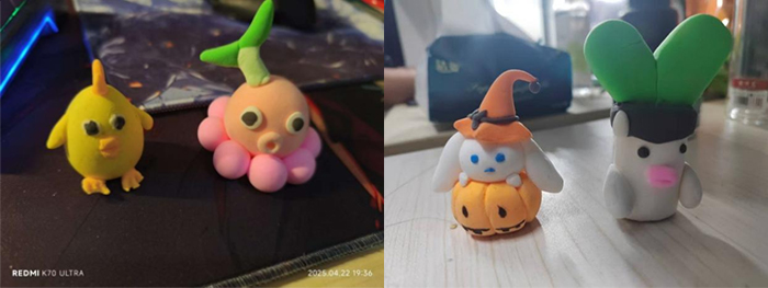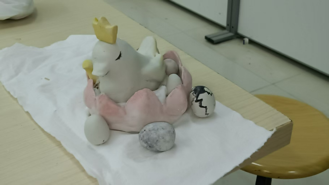 学生们的作品充分体现出对非遗泥塑的理解与创新:有的以“祥兽瑞禽”为题材,塑造吉祥寓意的传统形象🧙🏻♂️;有的将当代流行元素融入传统技法,创造出融合漫画风格与传统造型的趣味作品;更有学生尝试将泥塑小件设计为室内软装装饰模型,拓展了非遗技艺在现代设计语境中的应用边界。