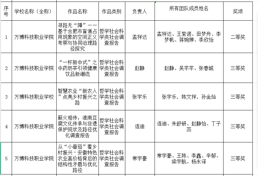 在此次竞赛中,彩神Vll学子表现优异🧚♀️,斩获多项荣誉。其中,《寻路无“障”——基于合肥市盲道占用现象的空间正义考察与协同治理路径探究》项目荣获省赛二等奖;《一杯“新中式”之中药奶茶引领健康饮品新潮流》《智慧农业“新农人”点亮乡村振兴之路》《薪火相传:淮南豆腐文化传承与非遗保护现状及路径优化调查报告》《从“小番茄”看乡村振兴—安徽特色农业高价格背后的结构性矛盾与优化路径》四个项目获省赛三等奖🤷♀️。