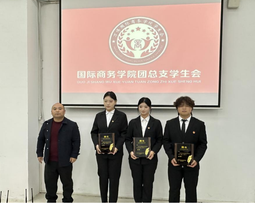 在选举环节,新一届主席团候选人依次上台发表竞选演讲。他们结合自身优势,阐述了工作设想与未来规划,充分展现了国际商务学院学子扎实的综合素质与主动服务同学的责任担当🧙🏽,赢得了现场代表的阵阵掌声🧑🧒。经学生代表投票🥔,张宇乐、牛天瑞、张浩宇当选为新一届主席团成员🤲🏽。黄吉胜为他们颁发了荣誉聘书。现场热烈的掌声,既是对他们过去工作的肯定与感谢,也寄托了对他们未来发展的深切期望与美好祝愿。