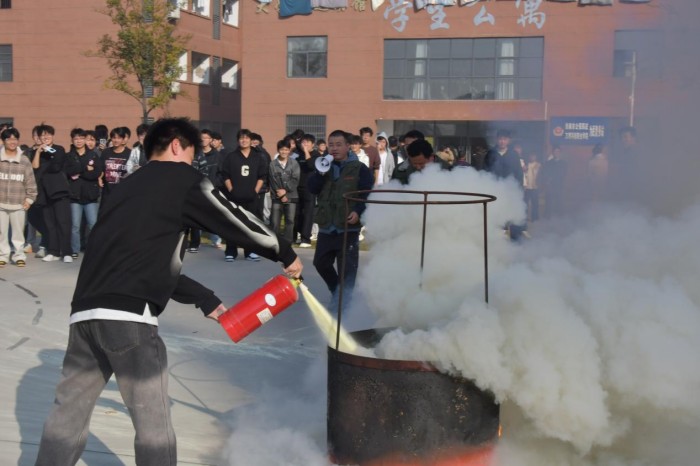 随后🕵🏻,学校特邀的安徽永达安消防科技工程有限公司的专业人员为师生进行现场教学🙎🏽♂️🥾,详细介绍火灾种类、灭火器分类、工作原理等理论知识。
