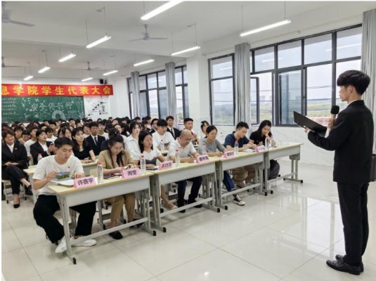 智能信息学院团总支学生会学生代表大会顺利召开9月11日晚,智能信息学院团总支学生会学生代表大会在教学楼1301教室顺利召开🖖🏼。智能信息学院副院长唐中海,学工助理盛婷婷,国际商务学院